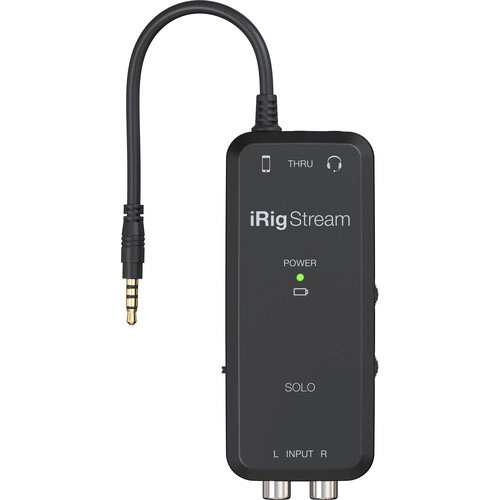 The iRig Stream Solo is easy to use with a captive 3.5mm TRRS cable to connect to the headphone port on your smartphone or tablet. However, iPhone, iPad, and Android devices without headphone ports require separately available adapters Lightning or USB Type-C to headphone jack adapters. The iRig Stream Solo’s 3.5mm mono thru line output lets you send your audio to additional devices such as cameras, mixers, and more. With two included AA batteries, you can enjoy up to 50 hours of reliable performance anywhere.