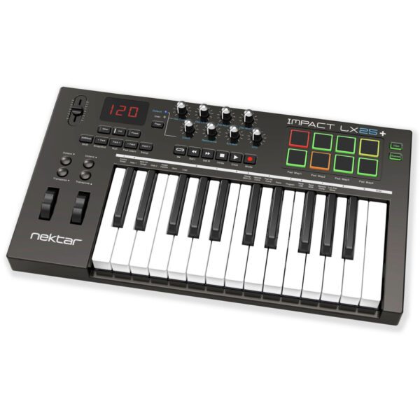 The Impact LX25+ MIDI controller is compact and portable yet jam-packed with intelligent and expressive performance control not even available on many premium products. Ever wanted a controller that hooks up automatically to your DAW? Impact LX25+ does exactly that.